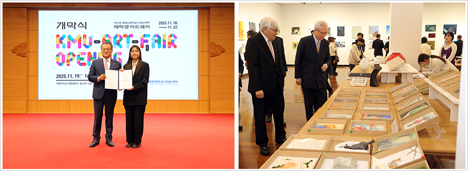 김윤희 미술대학장은 “아트페어는 학생들이 창작자로 성장하는 과정을 시민들과 함께 공유하는 소중한 장”이라며, “학생들은 창작부터 유통, 소비까지 이어지는 실질적인 미술 생태계를 몸소 체험할 수 있고, 관람객들은 가을의 풍성함 속에서 수준 높은 작품을 감상하며 예술을 즐기는 뜻깊은 시간을 보낼 수 있다”고 말했다.