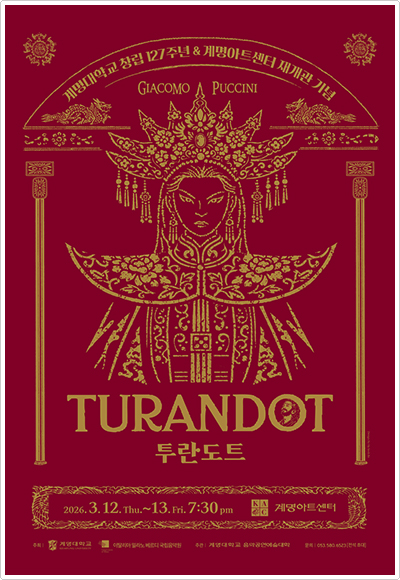 계명대학교가 오페라 ‘투란도트(Turandot)’ 100주년을 기념하는 국제 공동 프로젝트에 국내 유일 참여 대학으로 나서며, 2026년 3월 12일(목)부터 13일(금)까지 이틀간 계명아트센터에서 기념 공연을 연다. 이번 무대는 자코모 푸치니(Giacomo Puccini) 서거 100주년과 ‘투란도트’ 초연 100주년을 기념해 추진되는 국제 협업 프로젝트로, 계명대 창립 127주년과 계명아트센터 재개관을 함께 기념하는 공연이다. 특히 유럽연합으로부터 기금을 지원받아 진행하는 최초의 공연 사례이기도 하다.