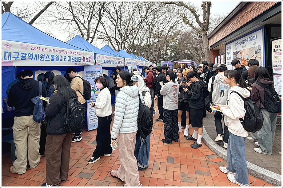 계명대학교가 2026학년도 1학기 취업주간 행사를 통해 청년고용정책 안내와 취업 지원 서비스를 한자리에서 제공하며 재학생과 졸업생의 진로 설계 지원에 나섰다.