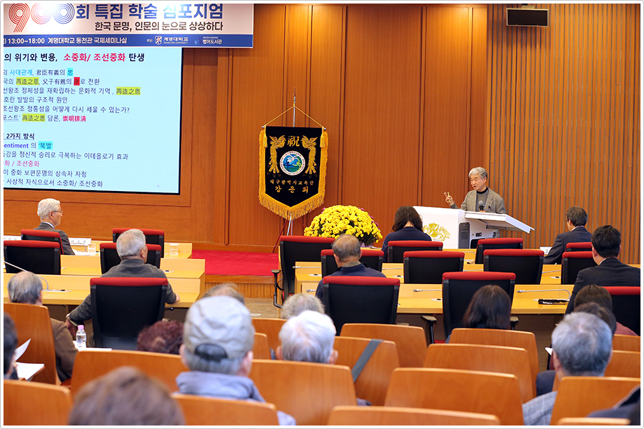 ‘철학의 대중화와 대중의 철학화’를 목표로 대구 시민과 함께 걸어온 계명대(총장 신일희) 계명-목요철학원의 《목요철학 인문포럼》이 오는 11월 6일(목), 제900회를 맞아 ‘한국 문명, 인문의 눈으로 상상하다’를 주제로 특집 학술심포지엄을 열었다.
